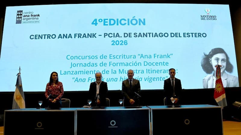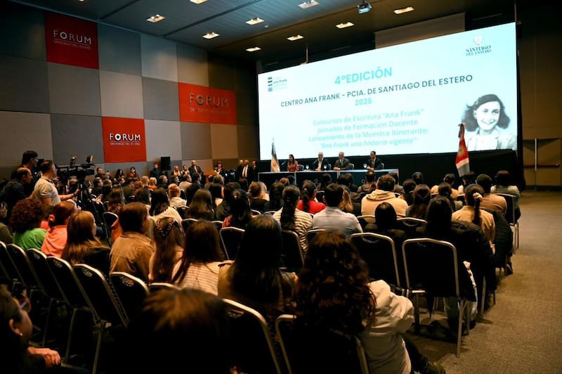 El gobernador de Santiago del Estero, Elías Suárez encabezó el lanzamiento y la capacitación docente de la 4° edición del Concurso de Escritura “Ana Frank: una historia vigente”, en el Fórum, junto a autoridades provinciales y representantes del Centro Ana Frank Argentina.