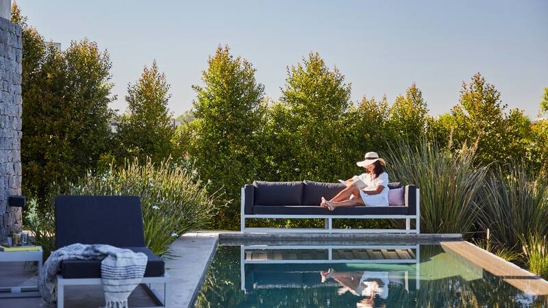 ¿Por qué? Sucede que sus muebles fabricados en aluminio anodizado están recubiertos de telas náuticas lo que les da no sólo un gran diferencial en el diseño, sino una su excelente calidad para que pueden estar en la intemperie por años sin deteriorarse o cambiar su estética.