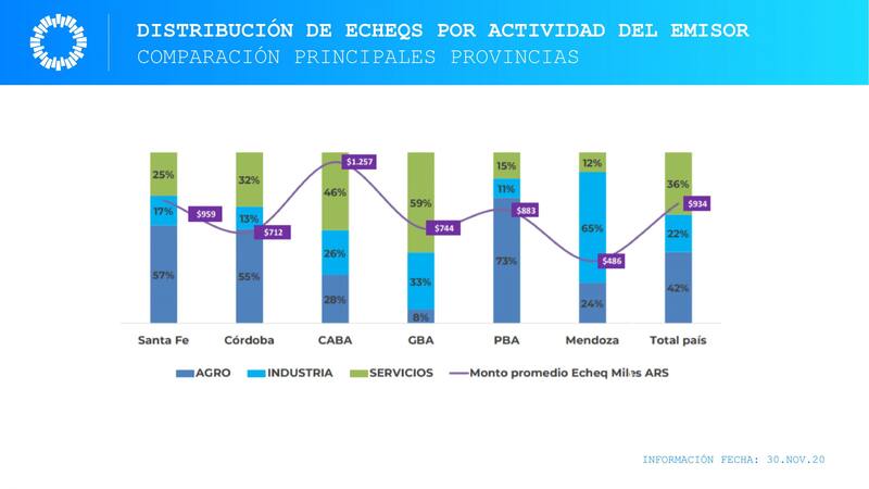 Asimismo, entre marzo y noviembre, la cantidad de echeqs pasó de 92 a poco más de 62.416, por $ 58.300 millones. De estos, el 42% correspondió al sector agropecuario; el 36% al de servicios y el 22% a la industria.