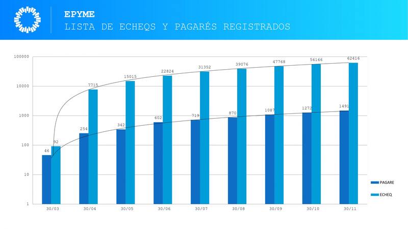 "El pagaré digital es un instrumento típico del mercado y lo que hicimos fue desarrollar la plataforma, Epyme, para que el pagaré que era físico pase a ser digital", explicó Baretta. Esta plataforma utiliza firmas criptográficas sobre todas las presentaciones y guarda las evidencias en blockchain. Es un sistema flexible, que permite gestionar legajos de pymes, depositantes y SGR en cualquier momento y en forma automática.