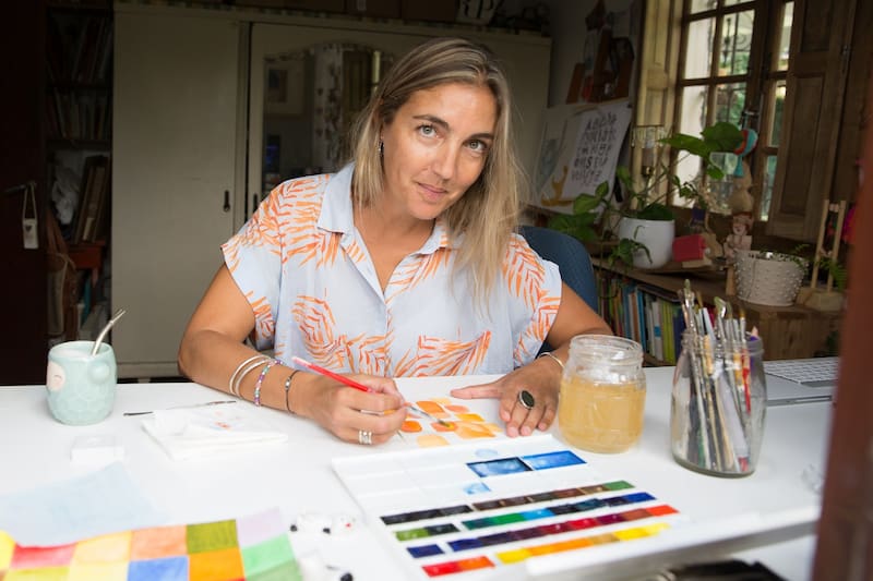 Valeria Cis también es ilustradora de literatura infantil desde hace 20 años y en 2001 creó La Casuni, la marca que eligió para crear objetos decorativos ilustrados que comercializa a través de Facebook e Instagram. Gracias a las herramientas digitales siempre trabajó desde su casa, donde tiene un taller. Está acostumbrada a mandar un mail a un cliente y al instante revisar la tarea de los chicos. “Fui entrelazando estas actividades, maternidad- producción, desde siempre. Y, aunque mis hijos ya son adolescentes y tienen más independencia, en esta cuarentena tuvimos que convivir y compartir los espacios de la casa todo el día , cuenta.