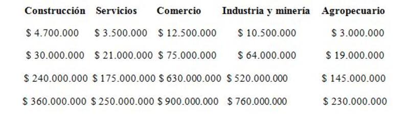 Según la Resolución 103/17 de la Sepyme las empresas se dividen en cuatro categorías en función de la actividad y de facturación anual de los últimos tres años, clasificándose en: