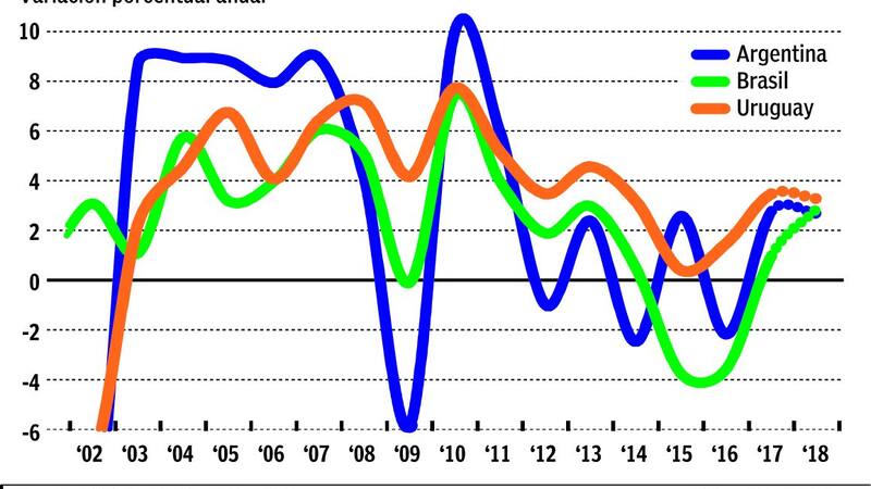 La publicación destaca que mientras Argentina y Brasil "festejan" cuando aparece alguna noticia económica favorable tras "largas" recesiones, en el "diminuto" Uruguay eso ya no es algo que genere sorpresa.