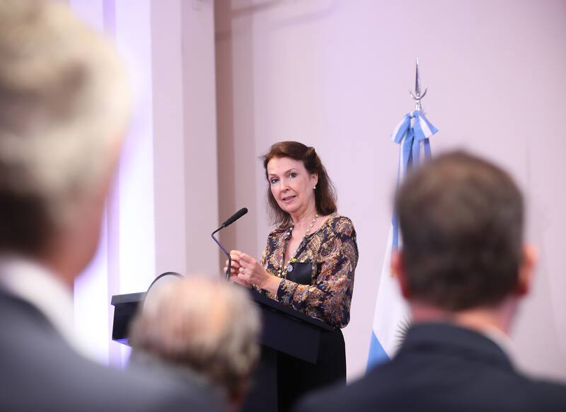 "Hay 8000 millones de personas a quienes podemos vender nuestros productos, y nosotros estamos aquí para trabajar en abrir todas las puertas necesarias para que nuestros productos lleguen a ellas, pero son ustedes, el sector privado, quienes deben indicarnos cuáles puertas debemos abrir; contarán con todo mi apoyo y el de esta Cancillería para trabajar en ello" destacó la Canciller Diana Mondino.