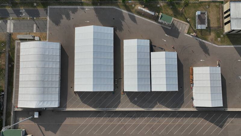 En cuanto a la seguridad, los módulos cuentan con características clave, como 7.000 metros cuadrados techados con posibilidad de expansión y adaptación, material de alta calidad compuesto por una lona impermeable e ignífuga de color blanco, portones seguros con portones corredizos de dos hojas de 5m x 4m, y medidas de seguridad contra incendios con dos hidrantes en la zona perimetral y 6 extintores Clase ABC de 10kg de capacidad.