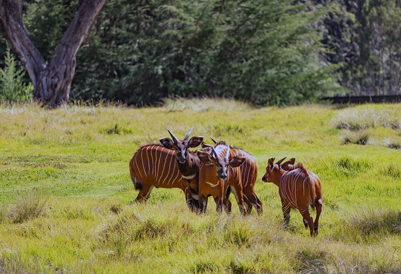 Los bongós recibieron cuidados continuos de un veterinario y dos especialistas en su especie. Su nuevo santuario ofrece un entorno seguro donde los antílopes pueden reproducirse y prosperar. Su descendencia algún día regresará a la naturaleza, recuperando los bosques del Monte Kenia como su hogar natural.