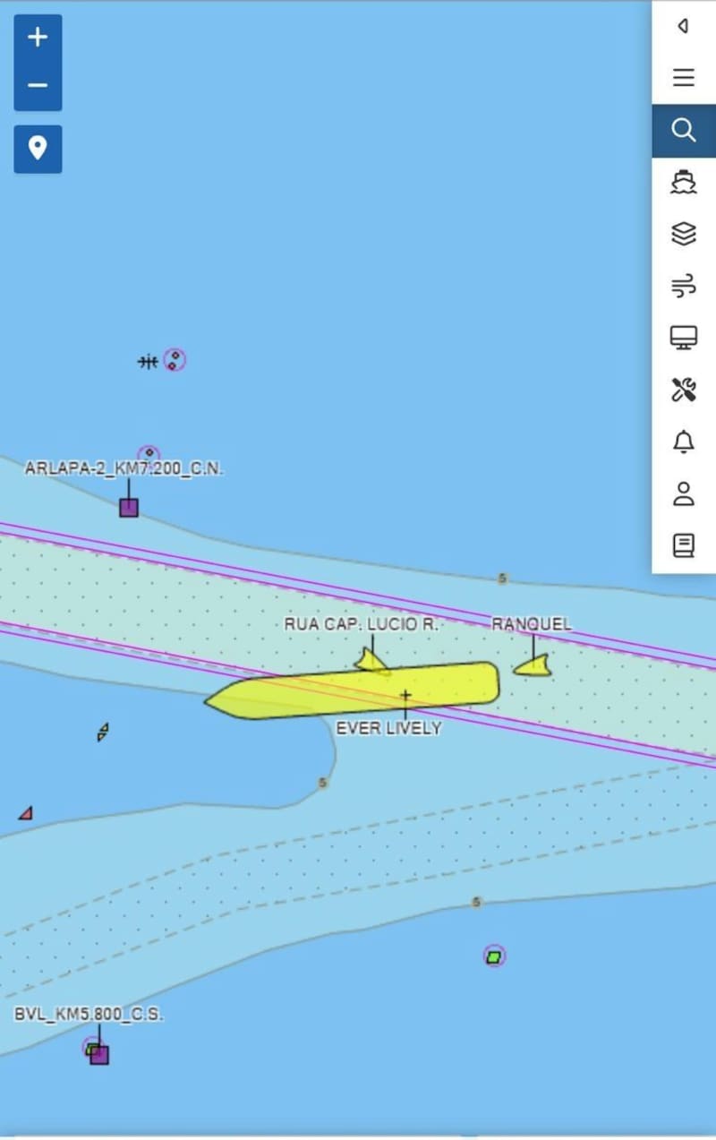 En el Boletín Fluvial se informaba ese día para el Canal Huergo una profundidad 9,30 metros en 80 metros de solera o 9,70 en 60 metros. No era un acceso sencillo para un buque como el Ever Lively de 335 metros de eslora por 46 metros de manga con 10 metros de calado.