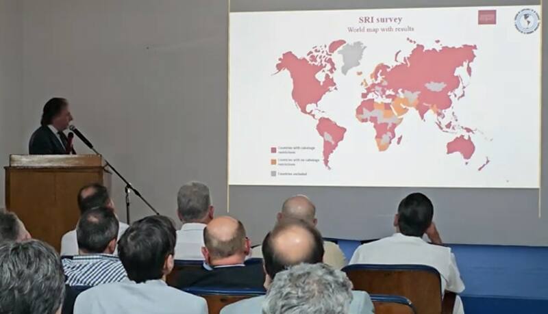 Para ser más explícito respecto a lo que hoy sucede globalmente, Baglietto mostró un mapamundi: los países en rojo tienen protección a su cabotaje, los grises son países mediterráneos sin interés marítimo y solamente los que están en naranja no tienen cabotaje protegido.