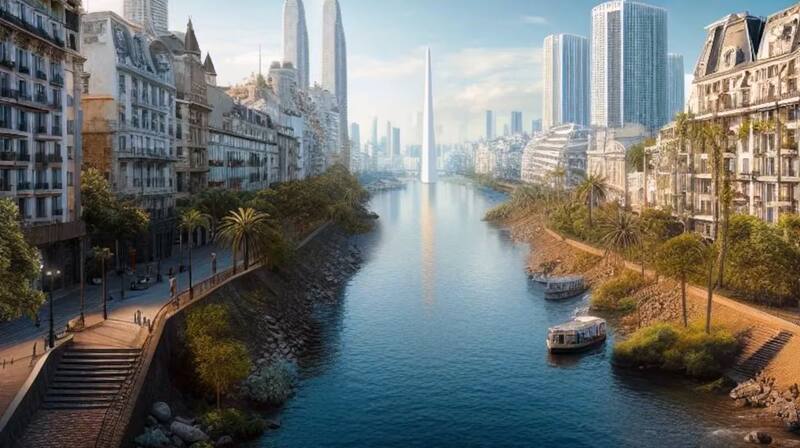 En reconocimiento a esos gobernantes que imaginaron servirse de estos cursos de agua, la inteligencia artificial vislumbró para el año 2123, una ciudad con vías navegables.