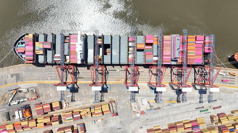 Exolgan, el puerto que recibió a este coloso del mar, estuvo a la altura de los acontecimientos: puso a disposición seis grúas pórtico operando en muelle de forma simultánea, un caso nunca visto en la logística de contenedores de la Argentina.
