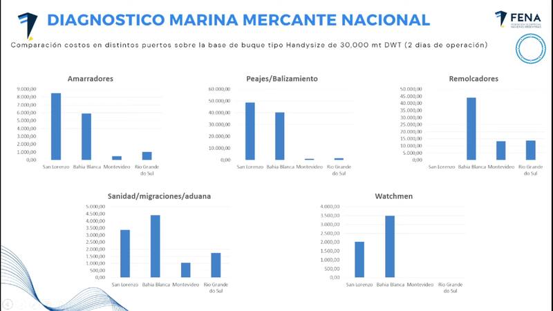 "Un buque extranjero que por excepción a la ley de cabotaje hace un trayecto por ejemplo entre San Nicolás y Bahía Blanca no paga impuestos en Argentina y obtiene el combustible a un precio más bajo. Y nosotros por tener pabellón nacional no solo pagamos los impuestos, sino que además ese flete nos es abonado en pesos", expuso el presidente de FENA.