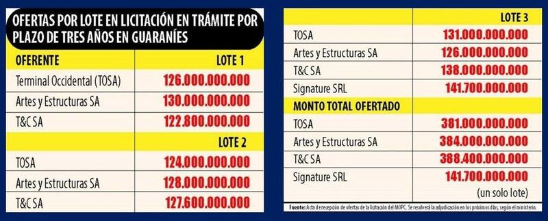 4) Entre las tres oferentes "ganó" una en cada lote.