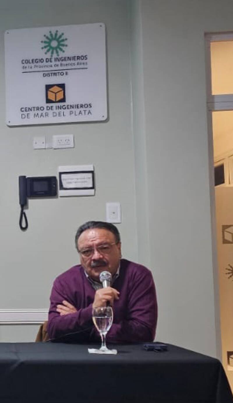 La disertación, a sala llena, tuvo lugar en el auditorio del Colegio de Ingenieros de la Provincia de Buenos Aires - Distrito ll donde se organizó el ciclo "Mar del Plata Nodo Logístico".