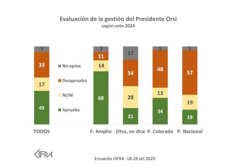 "En estos meses de gobierno Orsi ha logrado mantener e incluso incrementar un poco el apoyo inicial a su gestión, aunque han crecido más los juicios negativos. En un clima muy partidizado, los votantes de la coalición que no tenían opinión formada tienden a alinearse con muchos de sus líderes que tienen un discurso muy crítico hacia la nueva administración", señala este trabajo, una encuesta nacional telefónica a 800 entrevistados, realizada entre el 18 y 28 de setiembre.