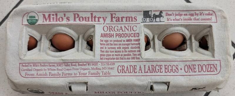 • Todos los tamaños de cartón y todos los tipos de huevos etiquetados con "Milo's Poultry Farms". Este retiro cubre todas las fechas de vencimiento.