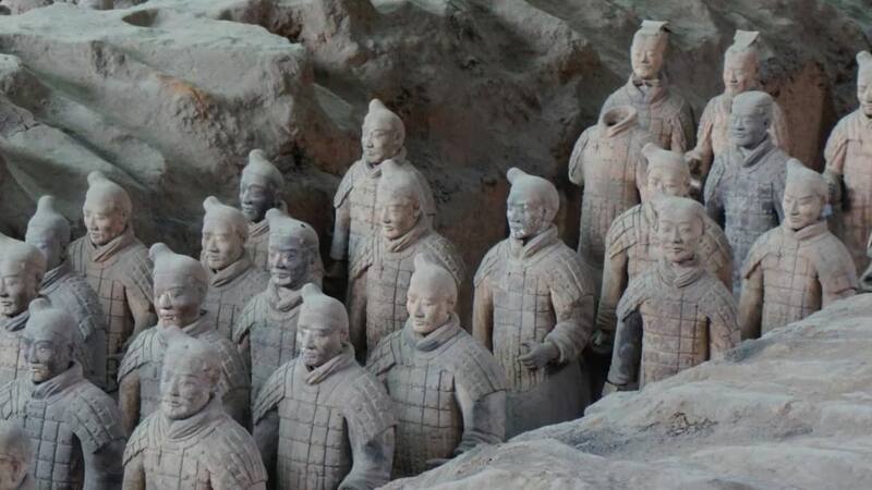 El sarcófago se encontraba en las cercanías de los Guerreros de Terracota. Se trata del entierro de al menos 8,100 estatuas de tamaño natural de guerreros chinos y sus caballos en el mausoleo del primer emperador de China, Qin Shi Huang en Xi'an.