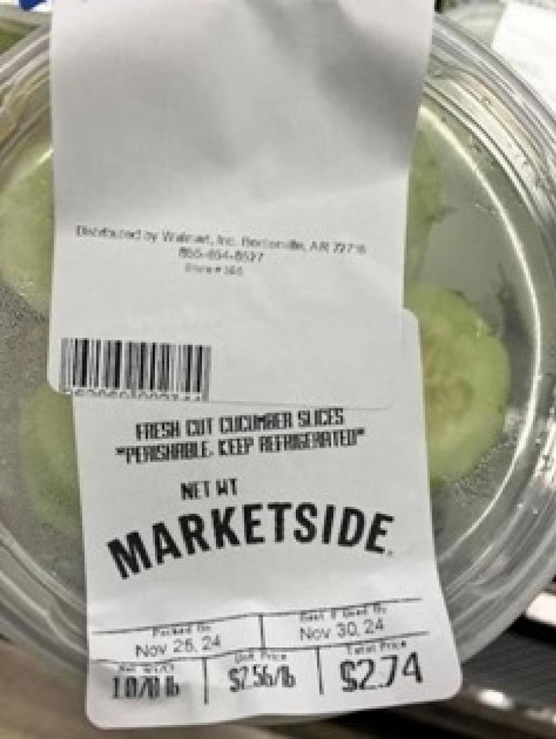 El alimento retirado corresponde a lotes de pepinos de la compañía Walmart, Inc. La gran cadena de supermercados debió alertar a las autoridades la de FDA para informar de la contaminación de Salmonella. El producto específico es de "rodajas de pepino recién cortadas de Marketside, producidas en tiendas selectas".