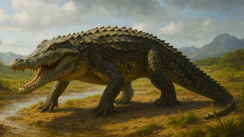 Este depredador ápice, similar a un cocodrilo, podría haber alcanzado unos 3,5 metros de longitud y pesado alrededor de 250 kilogramos, con una mandíbula ancha y poderosa y grandes dientes capaces de devorar presas de gran tamaño, entre las que probablemente se incluían dinosaurios de tamaño medio.