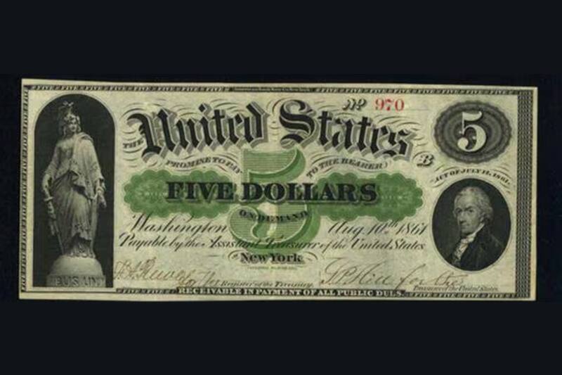 - Característica: Los primeros billetes impresos en Estados Unidos. Con ellos se pudo financiar la Guerra Civil.