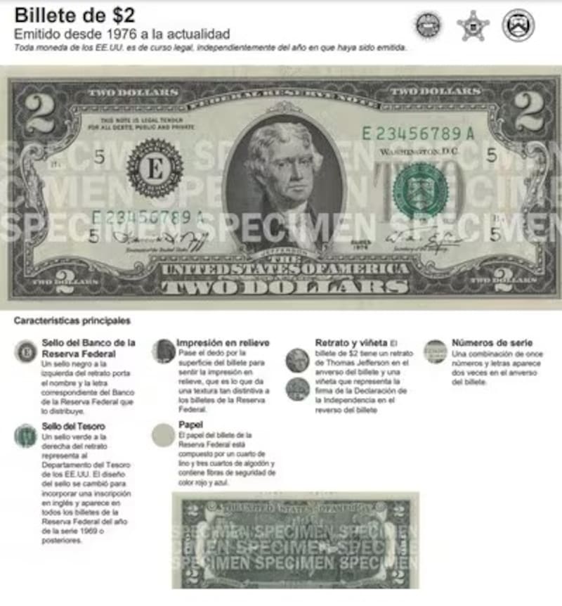 El Gobierno de EE.UU. rediseña los billetes principalmente por razones de seguridad, pero dado que el billete de 2 dólares raramente se falsifica, no hay planes de rediseñarlo.