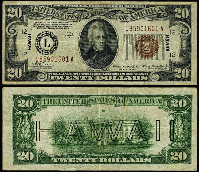 En el anverso de estos billetes aparece el retrato de Andrew Jackson, con un sello marrón y la palabra "HAWAII" impresa verticalmente en ambos lados.