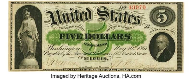 - Características: primeros billetes impresos en EE.UU., utilizados para financiar la Guerra Civil.