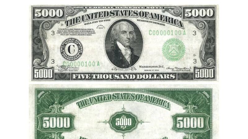 Previo a la evolución de la tecnología en las redes bancarias, Estados Unidos puso en circulación una serie de billetes de "denominaciones grandes" que se utilizaban únicamente para transacciones bancarias. Es decir, no podían ser manejados por el público y no eran aceptados en las tiendas.