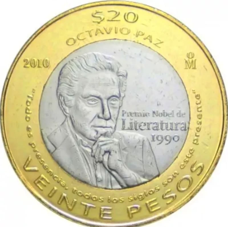 Moneda de 20 pesos homenaje aOctavio Paz