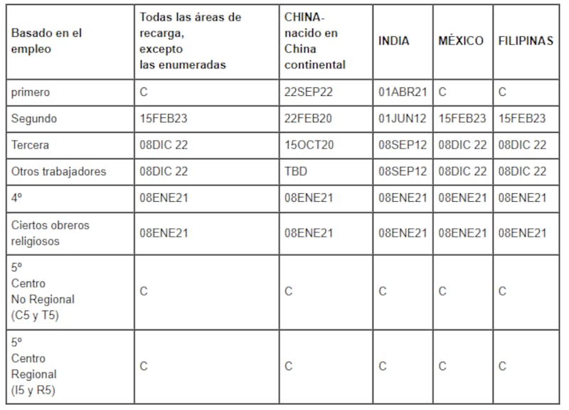 El organismo nacional, en coordinación con USCIS, revisa constantemente los procedimientos para determinar la disponibilidad de visas que esperan solicitar un ajuste de estatus según el empleo y/o la familia. Tras el proceso, se publica elBoletín mensual de Visas.
