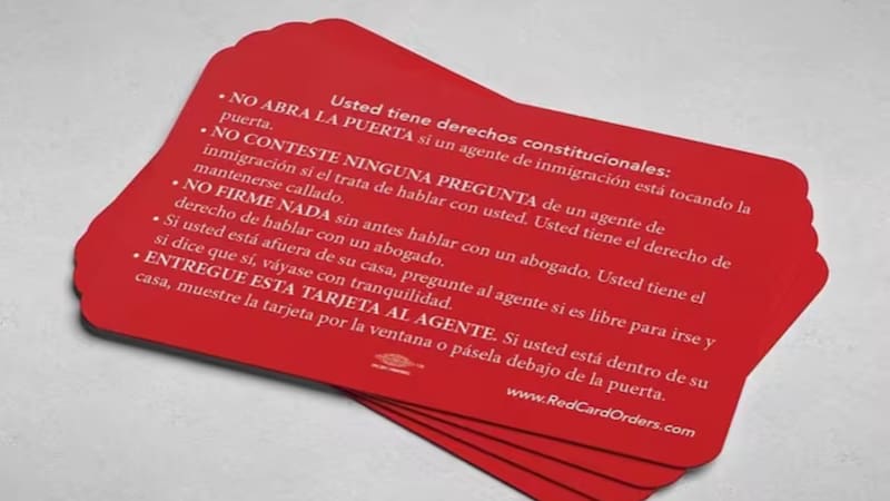 Se trata del Centro de Recursos Legales para Inmigrantes (ILRC) emite, y aconseja solicitar, una serie de tarjetas rojas con la información sobre los derechos legales, basados en la Constitución americana, que protegen a los inmigrantes de los agentes de ICE.