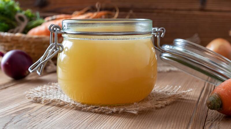 Además del colágeno, el caldo de carcasa de pollo es una fuente rica en gelatina, que se obtiene de los huesos y cartílagos del pollo.