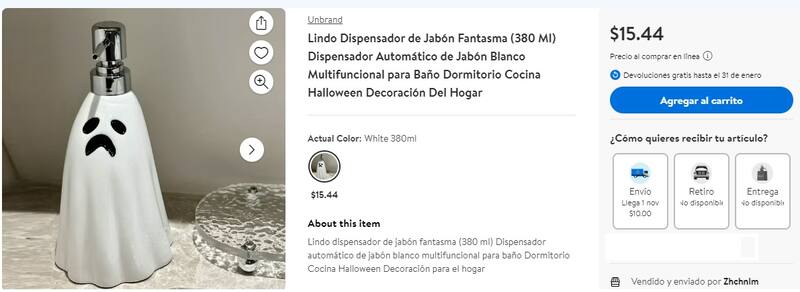 Uno de los productos más buscados es el dispensador de jabón con aroma a coco y lima, disponible en Dollar Tree por USD 1,25. Este precio contrasta notablemente con el de Walmart, donde un dispensador similar con diseño de fantasma se vende por USD 15,44.