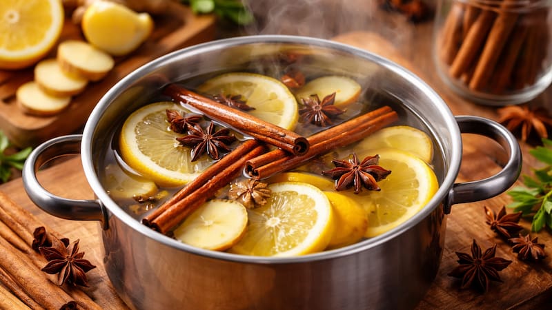 Se trata de una preparación conocida como “simmer pot” o popurrí en olla, que consiste en calentar ingredientes aromáticos en agua para liberar sus fragancias. La mezcla de cítricos y especias es una de las más utilizadas por su intensidad y efecto duradero.