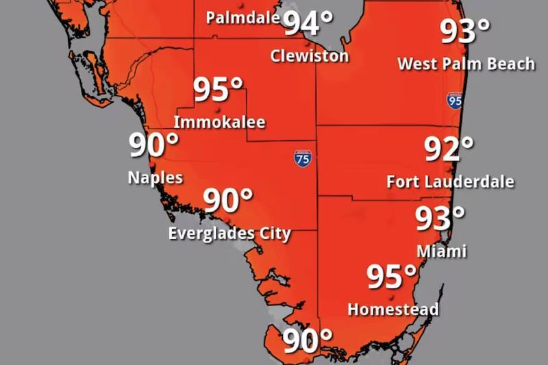 Las temperaturas podrían superar los 41,6 grados de sensación térmica durante el fin de semana, afectando especialmente a los condados de Miami-Dadey Monroe.