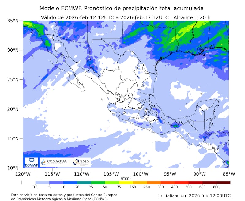 - Lluvias aisladas (0.1 a 5 mm): Chihuahua, Coahuila, Puebla y Veracruz.