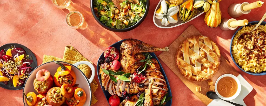 La comida incluye todos los platos tradicionales favoritos del Día de Acción de Gracias, incluidos: