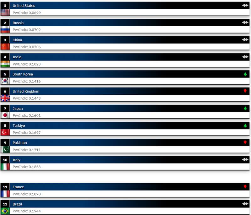 De acuerdo a un informe realizado por Global Firepower, que analizó la cantidad de equipamiento militar, el número de tropas, la disponibilidad financiera, los recursos y la situación geográfica para clasificar a cada ejército de cada país del mundo, clasificó a los ejércitos más poderosos del mundo.