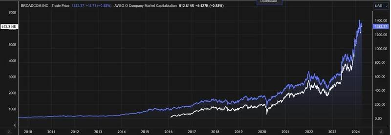 Por último, Broadcom emerge como otro contendiente en esta carrera hacia el billón de dólares.