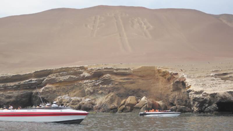Al arribar a esta ciudad, es fundamental tener en cuenta que en las zonas aledañas hay dos destinos imperdibles y verdaderamente únicos en el mundo. El primero de ellos es Islas Ballestas, un grupo de pequeñas islas compuestas por formaciones rocosas pobladas de fauna marina, a las que se accede en lanchas que parten desde el puerto de Paracas y realizan un recorrido de aproximadamente dos horas y media de duración. En el camino hacia las islas se puede apreciar el famoso Candelabro: un geoglifo que tiene una extensión de 120 metros, al que se le denomina también Tres Cruces o Tridente. Este peculiar atractivo turístico fue grabado en rocas color crema que la arena nunca llega a tapar por completo debido a los vientos que siempre están quitando el exceso de arena de los canales. Si bien el propósito de su creación es incierto aún hoy, se cree que tiene relación con las líneas y geoglifos de Nazca y de Pampas de Jumana.